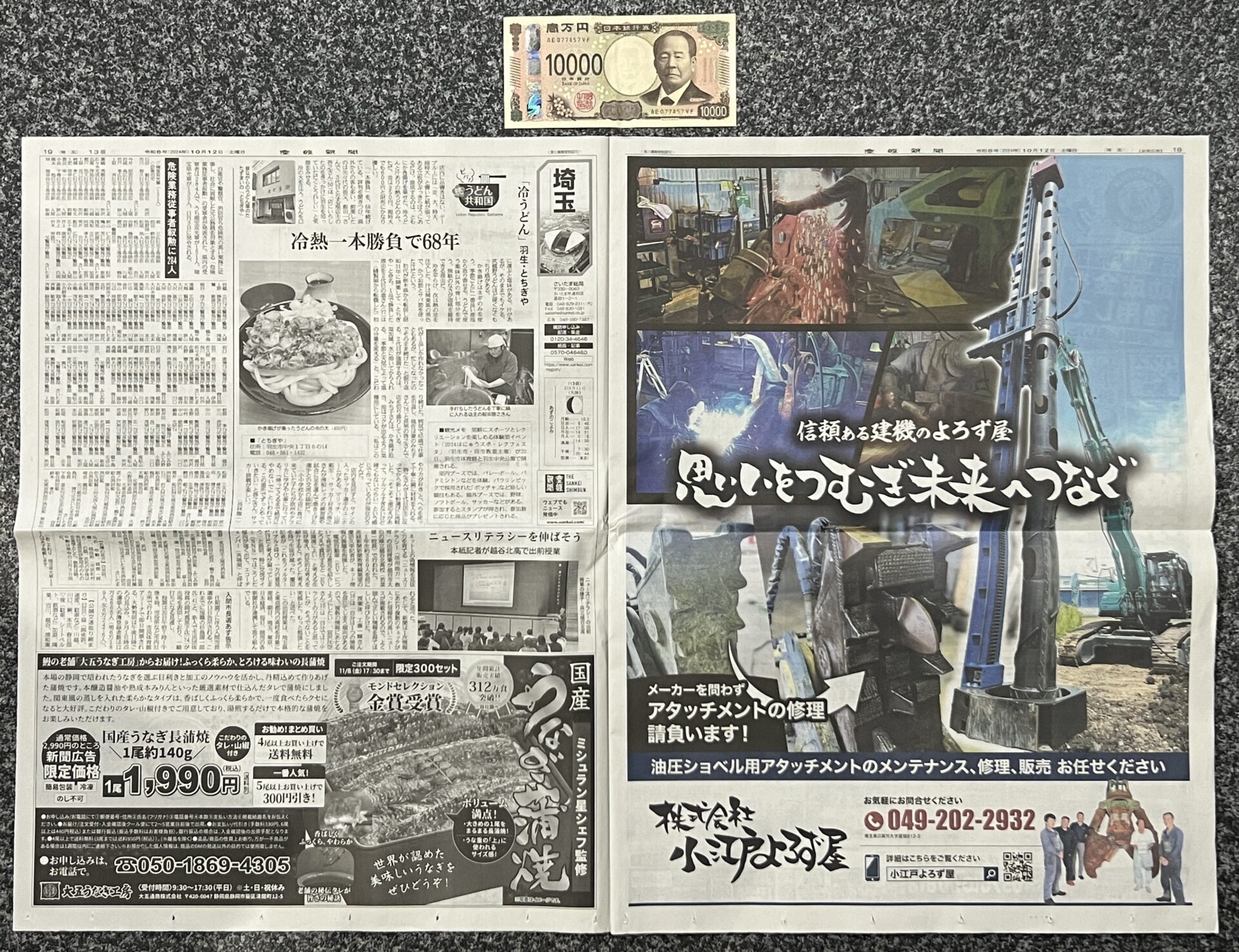 2024年10月12日の産経新聞朝刊に当社小江戸よろず屋の広告が15段(1ページ)に掲載されました。